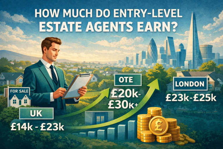 Starting as an entry-level estate agent, such as a trainee or negotiator, can be both exciting and challenging. In the UK, basic salaries usually range from £14,000 to £23,000. However, first-year earnings (also called On Target Earnings or OTE) often reach £20,000 to £30,000 or more because of commission.